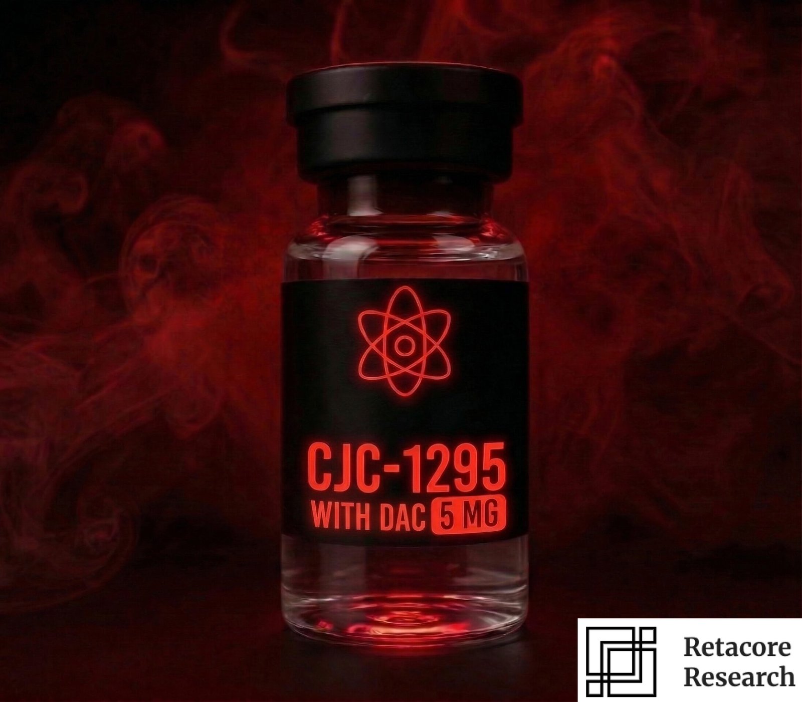 CJC-1295 with DAC activates GHRH receptors on anterior pituitary somatotrophs, stimulating pulsatile GH release and downstream IGF-1 production. Its extended half-life makes it suitable for long-interval dosing research protocols examining sustained GH axis stimulation, lean mass, and metabolic parameters.